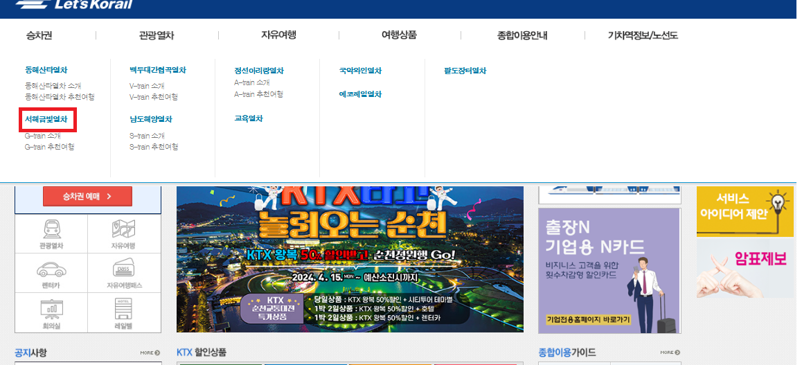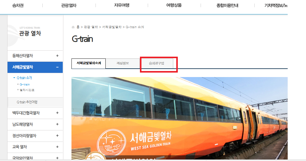 2. 서해금빛열차에서 승차권구입을 누릅니다.