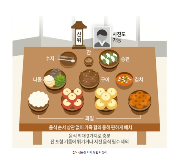 Tip: 과일과 떡은 지역 특산품을 사용해도 무방하며, 음식은 반드시 짝수보다는 홀수로 준비하는 것이 원칙입니다.