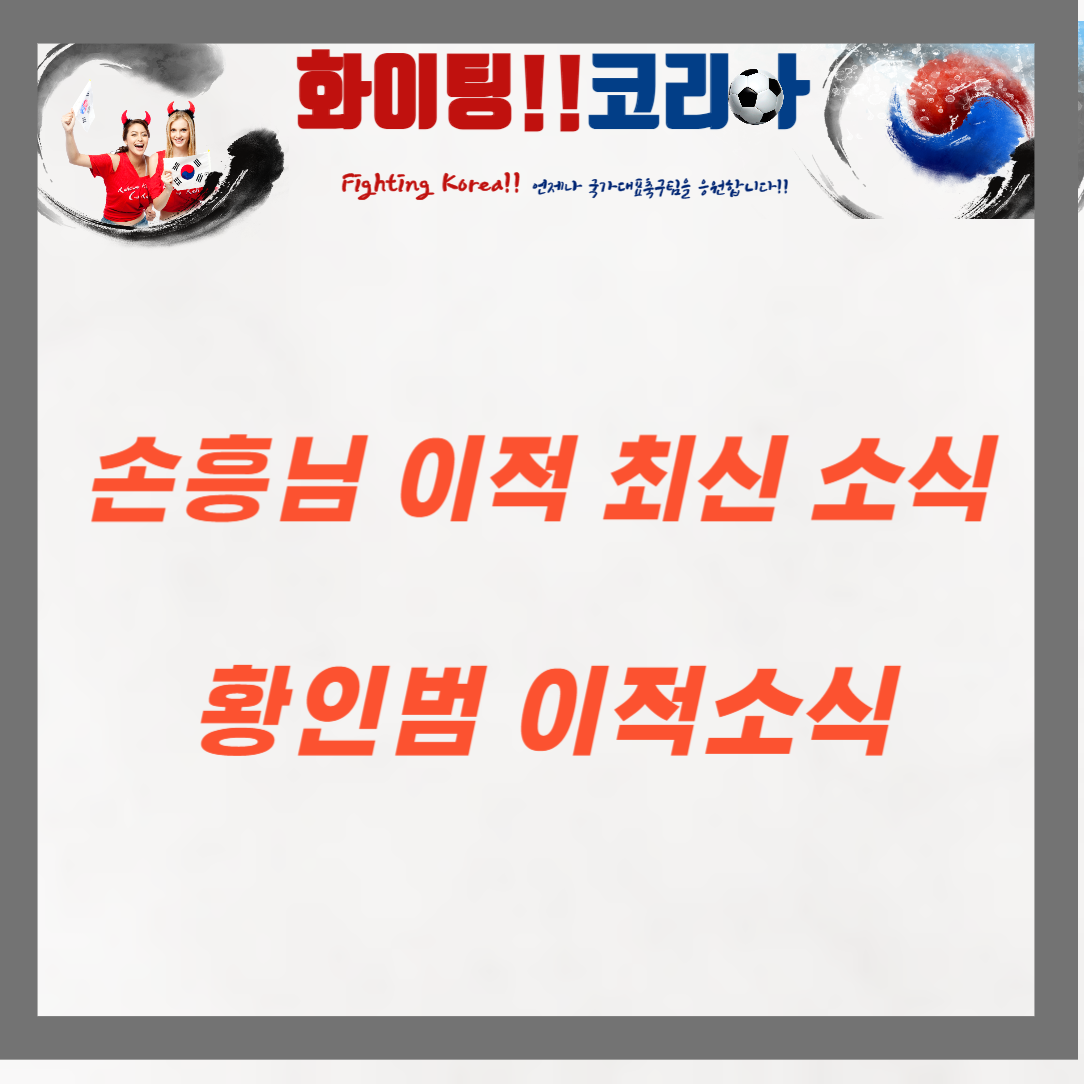 대한민국 주장이자 프리미어 리그 토트넘 핫스퍼의 주장인 손흥민의 이적이 뜨거운 이슈입니다. 소속팀과 계약기간이 1년 남은 손흥민의 최신 이적 소식과 세르비아 리그에서 뛰고 있는 황인범 이 이적소식을 알아보겠습니다.