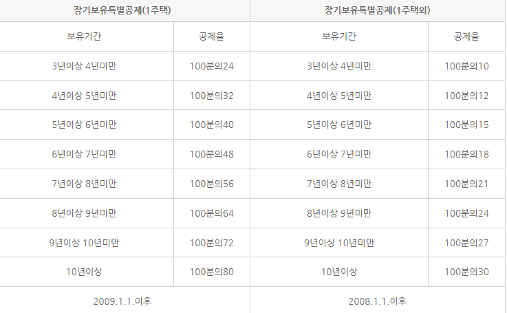 - 10년 이상 보유 시 최대 30% 공제가 가능합니다.